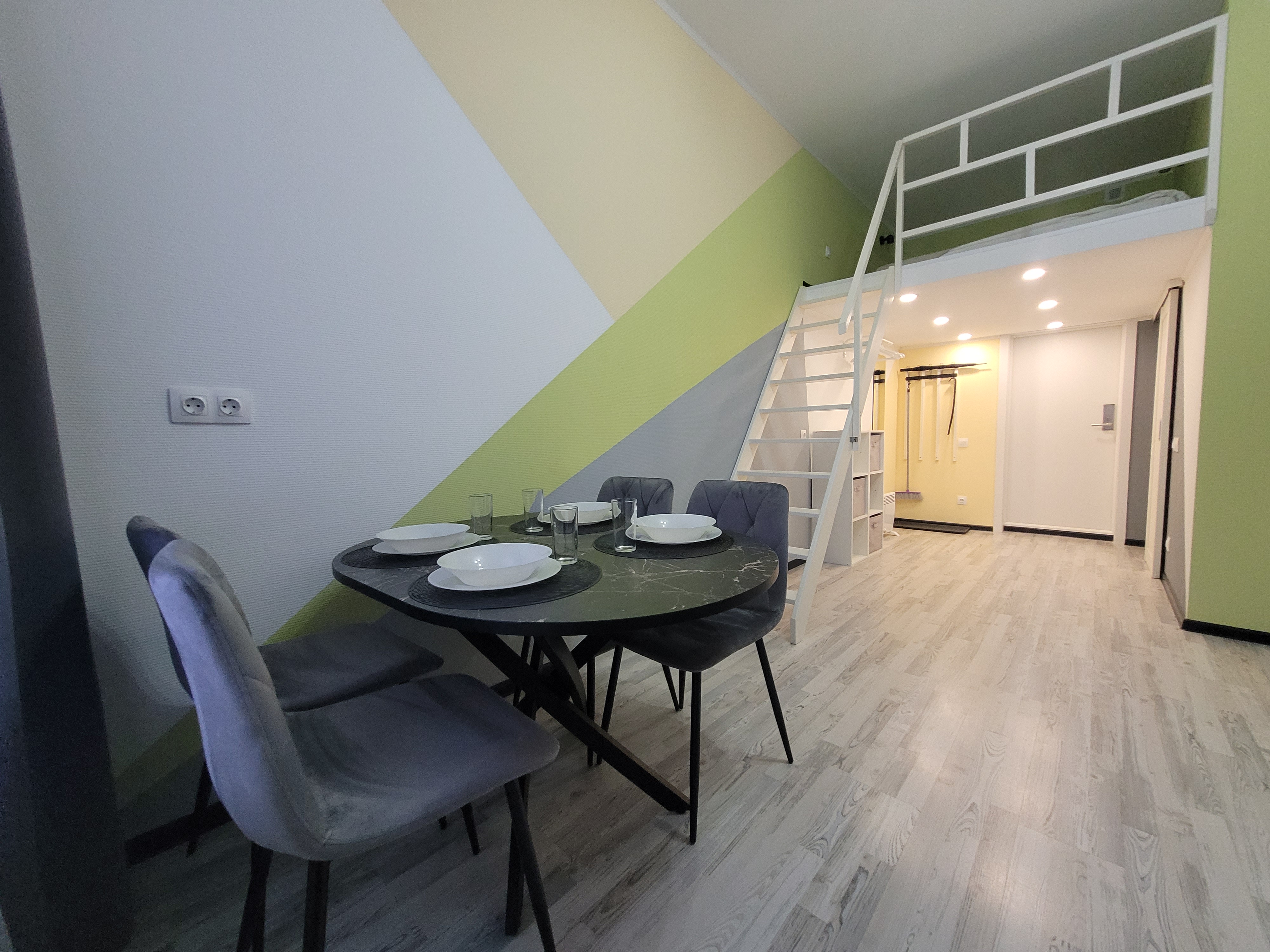 Комфортабельная студия 23 кв.м. для проживания 4 человек в самом центре Санкт-Петербурга с прекрасным видом из окна – на канал Грибоедова. Студия оснащена современной мебелью и техникой для полноценного комфортного краткосрочного и длительного проживания. На втором уровне расположена спальная зона с двуспальным ортопедическим матрасом (отсюда вид из окна еще красивее), а внизу оборудована гостиная с раскладным двуспальным диваном с мини-кухней, сан. узлом и прихожей. Кухня оснащена посудой, чайником, электрической плитой, холодильником. Мы предоставляем для Вас свежее постельное белье, полотенца, косметические принадлежности, средства для чистки одежды, губки и сушильные приборы для обуви. Самое главное – студия оснащена электронным замком, что позволяет организовать для Вас бесконтактное заселение. За один день до заезда Вы получите код для замка, которым сможете пользоваться в течение всего проживания. Так же, в целях безопасности, общие зоны оборудованы видеокамерами.