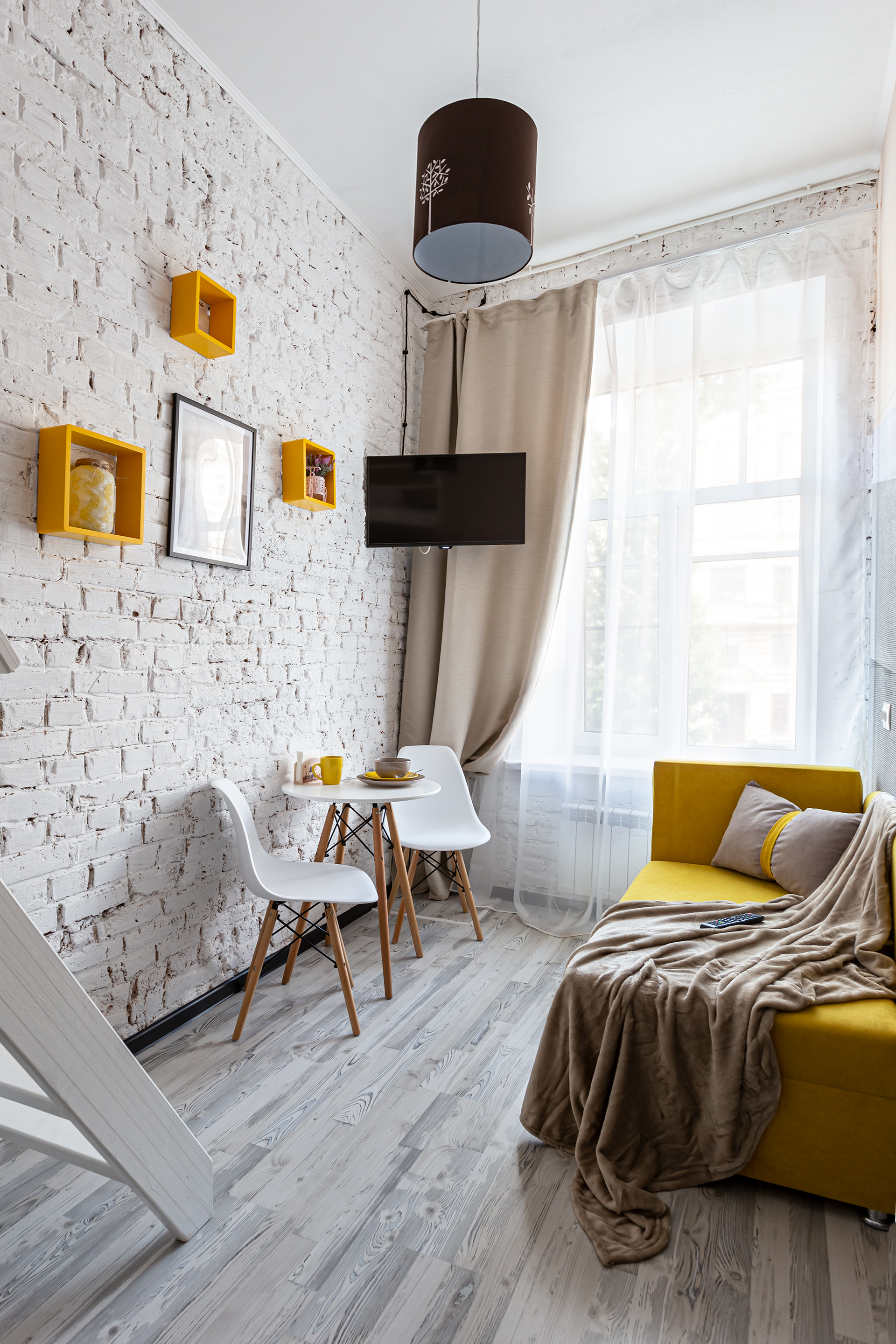 Уютная студия 17 кв.м. в самом центре Санкт-Петербурга с прекрасным видом из окна – на канал Грибоедова. Студия оснащена современной мебелью и техникой для полноценного комфортного краткосрочного и длительного проживания. На втором уровне расположена спальная зона с двуспальным ортопедическим матрасом (отсюда вид из окна еще красивее), а внизу оборудована гостиная с раскладным двуспальным диваном с мини-кухней, сан. узлом и прихожей. Кухня оснащена посудой, чайником, электрической плитой, холодильником. Мы предоставляем для Вас свежее постельное белье, полотенца, косметические принадлежности, средства для чистки одежды, губки и сушильные приборы для обуви. Самое главное – студия оснащена электронным замком, что позволяет организовать для Вас бесконтактное заселение. За 1 день до заезда Вы получите код для замка, которым сможете пользоваться в течение всего проживания. Так же, в целях безопасности, общие зоны оборудованы видеокамерами.