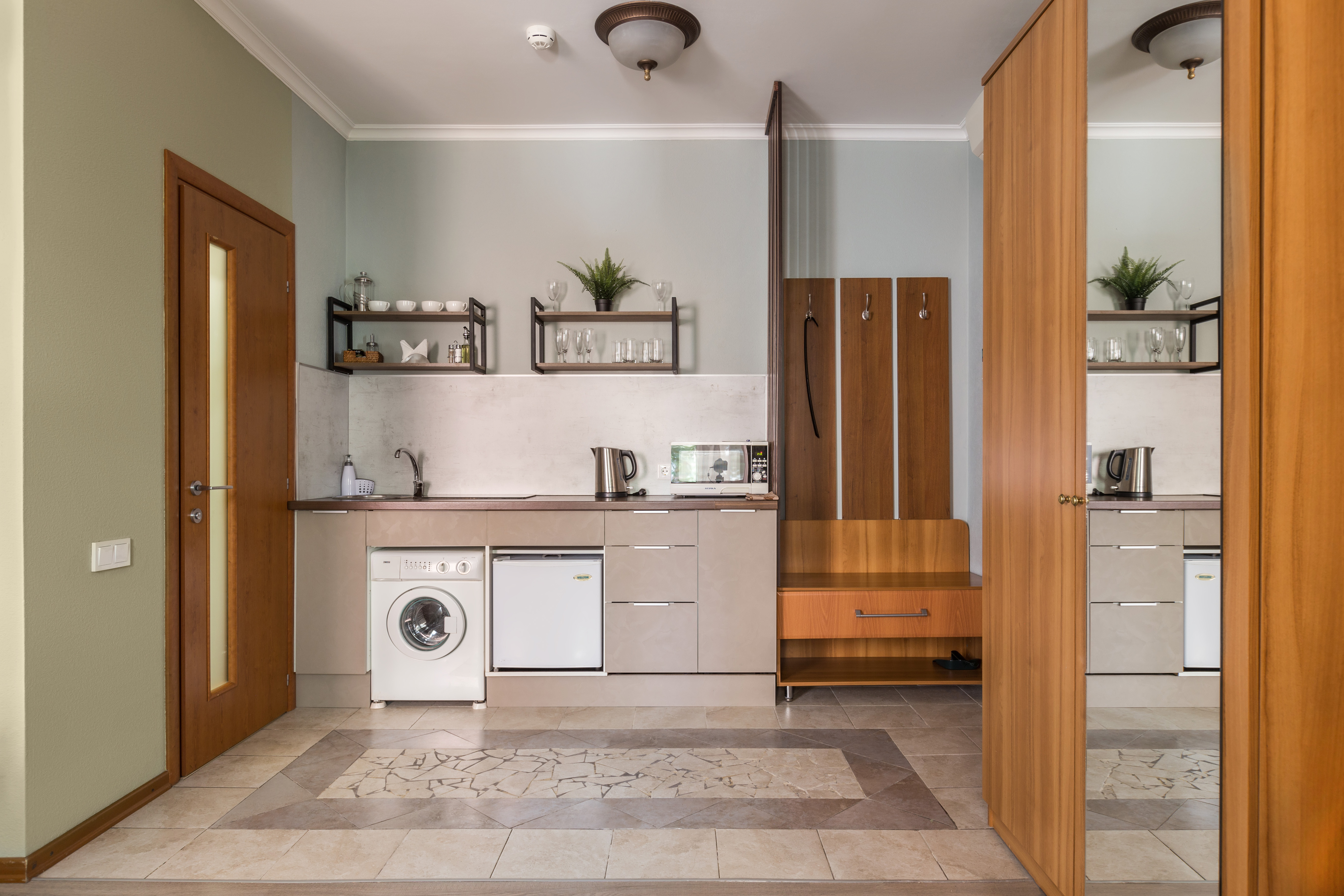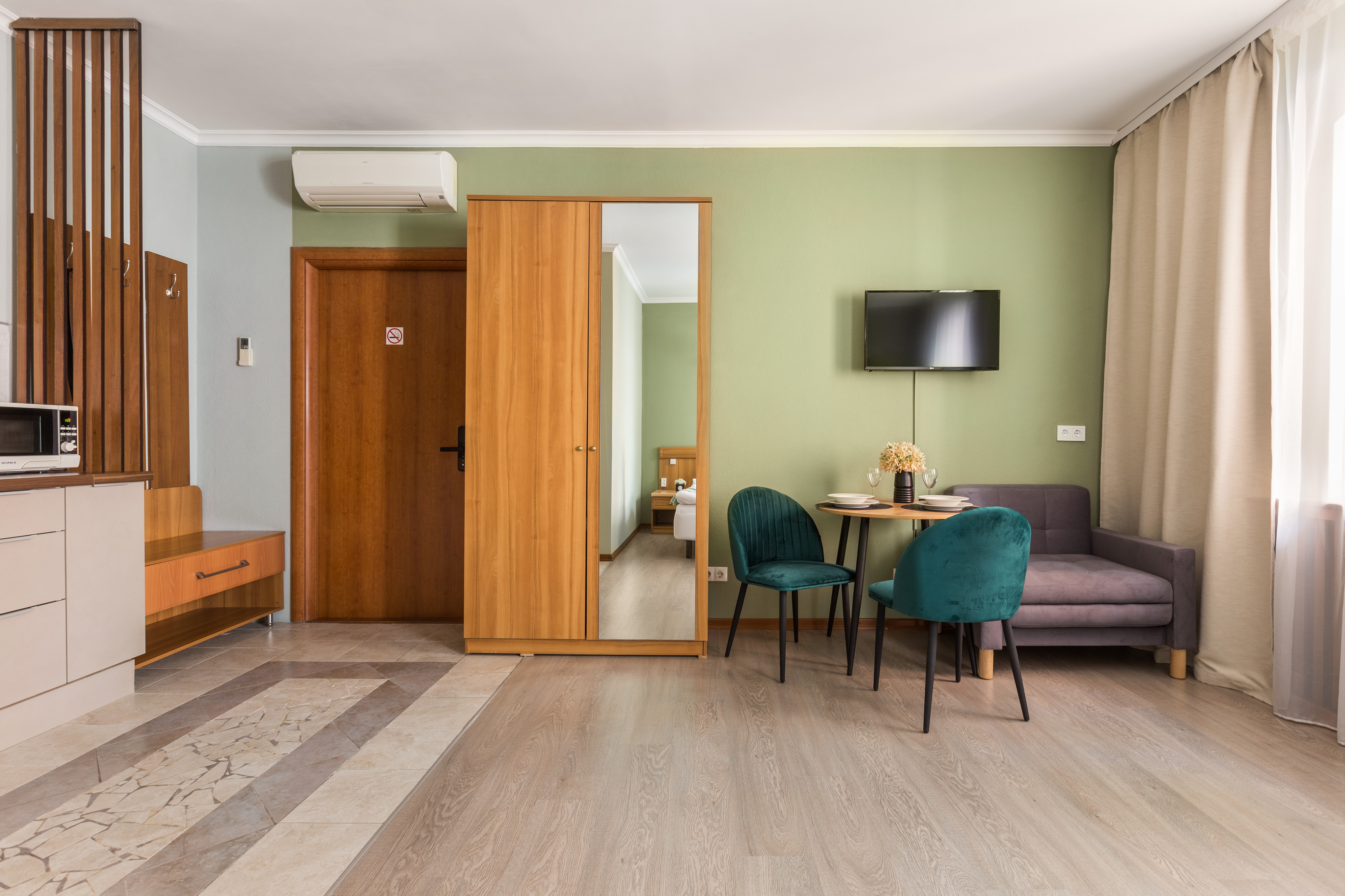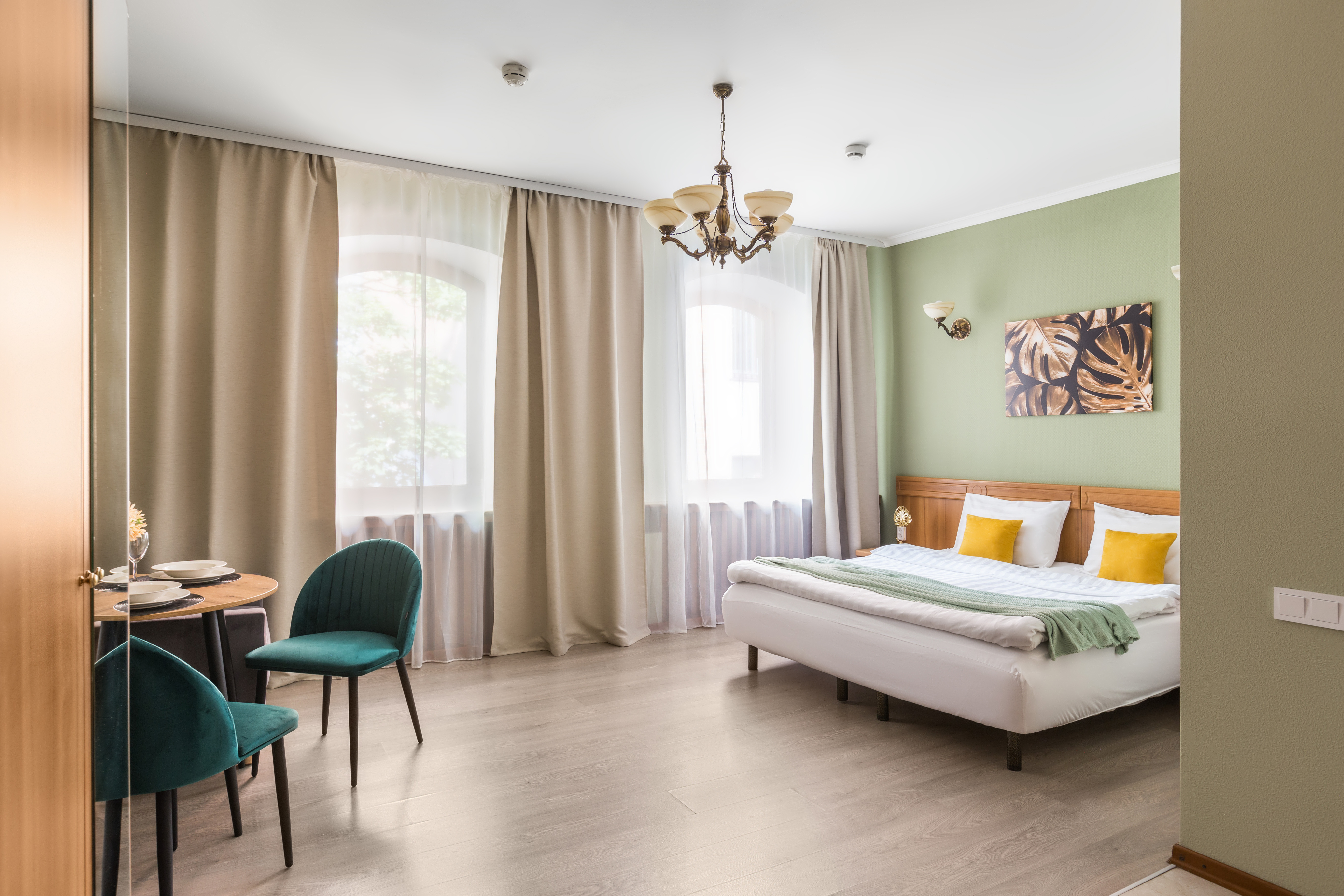 Комфортабельная студия 24 кв.м. для проживания трех человек в самом центре Санкт-Петербурга с окнами на тихую улицу. Студия оснащена современной мебелью и техникой для полноценного комфортного краткосрочного и длительного проживания. В студии гармонично расположена спальная зона с двуспальной кроватью и ортопедическим матрасом, кухня и свой сан.узел. Кухня оснащена посудой, чайником, электрической плитой, холодильником. Мы предоставляем для Вас свежее постельное белье, полотенца, косметические принадлежности в день заселения, средства для чистки одежды, губки и сушильные приборы для обуви. Самое главное – студия оснащена электронным замком, что позволяет организовать для Вас бесконтактное заселение. За один день до заезда Вы получите код для замка, которым сможете пользоваться в течение всего проживания. Так же, в целях безопасности, общие зоны оборудованы видеокамерами. Апартаменты расположены на 3 и 4 этаже.